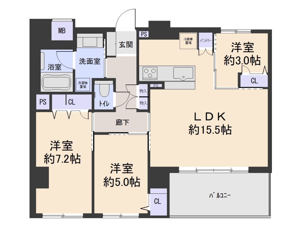 バルコニー面積壁芯72.38㎡/8.10㎡