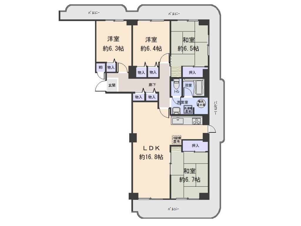 ・全室6帖以上の広々4LDK